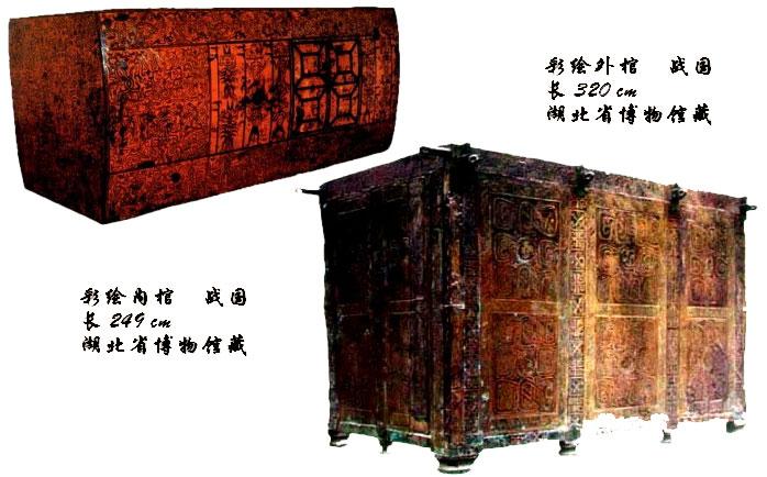 那么,历史上做过多大的漆器呢?极限能做多大,我们不是很清楚,这得拿证据说话。目前已知最大的漆器是曾侯乙墓出土的内外棺,外棺的尺寸是长3.20米、宽2.10米、高2.19米,可以想象,它像一个大卡车的车厢那么大。
