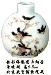 鼻烟壶在使用当中每个人在炫耀的时候有的做得非常巧妙。在炫耀当中,我一定要在情趣上高你一等。比如说有这样的鼻烟壶,我见过青花釉里红,红的是画的梅花,青花画的是喜鹊。两人走一块儿了,把鼻烟壶一掏出来多少年来有点比试,说您看我这个青花釉里红。数数几个喜鹊?四个,四喜临门。您那个呢?我这个青花釉里红。您好也数数几个喜鹊,也四个。今儿什么日子啊?四月初四,是吧俩人比试完了,说得了,没什么高低都一样了,就回去了。