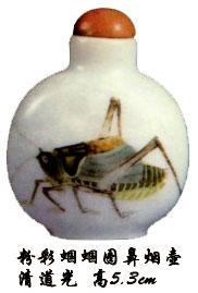 道光以后比较流行的题材都是什么呢?他最愿意画的是蝈蝈儿,你看鼻烟壶画一个大蝈蝈估计都是道光左右的,为什么画一个蝈蝈儿呢?