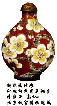 养心殿造办处有这样的记载:雍正七年三月三十,”太监刘希文传旨:着查有早交出圣祖年制款黄色珐琅中间画寿字背壶式鼻烟壶,此鼻烟壶照样烧造的未见交进,原样亦未交进。再有圣祖年制款红色一树梅珐琅背壶式鼻烟壶,照样烧造的见过,其原样亦未交进。饮此“。雍正皇帝下旨说:早年让你们烧造的鼻烟壶,仿康熙年制黄色珐琅鼻烟壶的样子,结果烧造的没有交进来,原来那个样壶也没还回来。还有一个红色珐琅鼻烟壶,你们倒把烧造的交给我了,可是原样也没交回来。可见雍正对这两个康熙年制的鼻烟壶非常的重视。