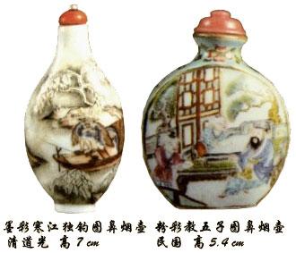 当时的人呢,拿这个鼻烟壶多少还有一点比试,比如有人拿在手里,拿一鼻烟壶,说您拿什么壶?他说我这大独钓。我第一次听见这词我也不明白,北方人音变,他应该准确发音大独钓。画一老翁独钓一个人在水边钓鱼,这肯定是柳宗元那首《江雪》来的: