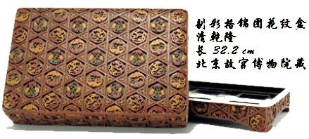 动刀的漆器里还有一个著名的品种叫款彩。我在上一讲中讲过"款识"一词,凸起来的为识,陷下去的为款。款彩,顾名思义,就是以平面为准,雕下去的部位全部重新染上颜色。