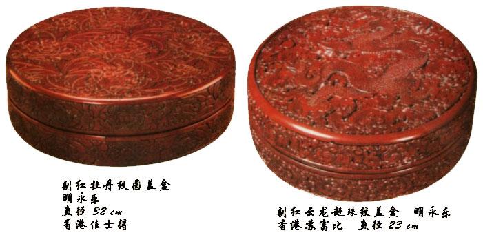 迄今为止,古代漆器在国际市场上的最高价是多少呢?2001年,在香港佳士得春季拍卖中有一个牡丹纹的剔红盒子,卖了1287万元人民币,这是目前的一个纪录。一个漆盒子卖到这个价钱,今人想起来都觉得很神奇。古人留下这么一个盒子,居然值两座别墅。到了2004年,香港苏富比秋季拍卖中有一个云龙纹的剔红盒子,也卖了1194万元人民币。这两件剔红的漆器都是明朝永乐时期的。我在讲《陶瓷篇》青花瓷时讲过,永乐一直到宣德时期,明朝跨越了建国初期的困境,国力开始增强,此时的工艺品也表明国家的国力。从小看大,从微观看宏观,就是这个道理。永乐的剔红盒子得到现在国际市场确认的一个价格,可以看到当时中国呈现出一个多么强盛的状态。