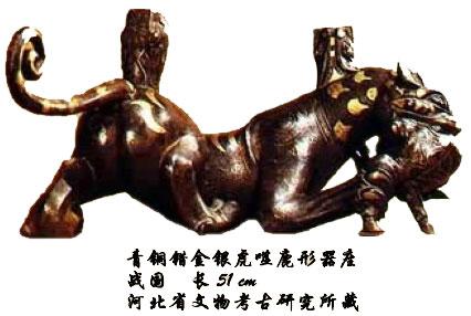 周代有嵌螺钿的兽面壘,这是在青铜器上镶嵌。战国到汉代,错金银的工艺登峰造极。错金银也是一种镶嵌技术。比如战国中山王墓出土了错金银虎噬鹿的器座,非常漂亮。这些文物都表明中国的镶嵌艺术在很早的时间就非常成熟了。
