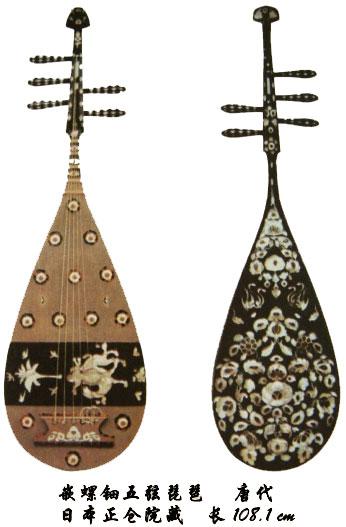 今天能够看到的唐朝最准确、没有走样的文物,往往是在正仓院。比如唐代乐器中有嵌螺钿的四弦琵琶、五弦琵琶、阮咸,在正仓院里都可以看到,像新的一样。不看到这些琵琶,我们都不能想象唐朝的那种奢华生活。实物结合唐朝的文字记载,我们多少能够感受到一点儿。比如白居易著名的《琵琶行》:"四弦一声如裂帛。"这里说的就是四弦琵琶。正仓院里的四弦琵琶,可以使证物和文献相对应。