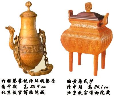 另外,还有翻簧,又叫竹簧、贴簧,有的地方还叫文竹。就是把竹子里面那一层竹簧剥下来,反过来贴在木胎、竹片外面,再在上面雕刻。再有就是编制的竹器,比如夏天用的竹夫人,我就不在这里讲了。