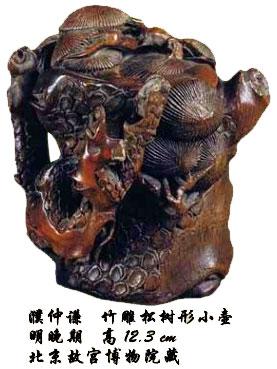 最早的竹器,目前能够看到比较成形的带有雕工的是长沙马王堆出土的竹勺,勺柄上带有很精细的雕工。竹雕艺术在唐宋史籍中都有很明确的http://www.99lib•net记载,但能够看到的出土实物并不多。